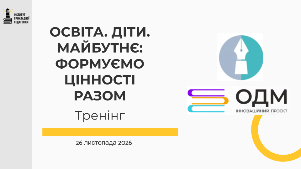 26 листопада 2025 року в Інституті прикладної педагогіки відбувся практичний семінар «Освіта. Діти. Майбутнє: формуємо цінності разом» – логічне продовження загальнонаціонального круглого столу «Цінності сучасного суспільства: теорія та практика». Захід зібрав фахівців, аналітиків, експертів та авторів підручників для учнів 1–2 і 5–6 класів. Його метою стало створення основи для майбутньої моделі сучасної української шкільної ціннісної освіти, у якій цінності не декларуються як абстракція, а інтегруються у навчання, зміст підручників і педагогічні рішення.
